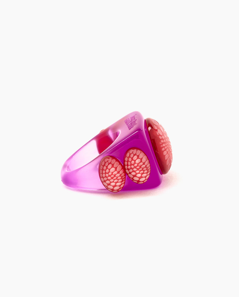 Plastic is fantastic, but not indestructible. Please keep in mind that La Manso rings are jewels, and they need to be cared for as such. Each product is distinct since it is individually handcrafted, which gives it its uniqueness and personality. Any aggressive knock may irrevocably damage the rings. Contact with liquids may affect their durability, even salty water, or your own sweat for prolonged exposure. Take them off when cleaning your hands and avoid any solutions, specially sanitizer gel, as they might wear away their shine or weaken the structure.