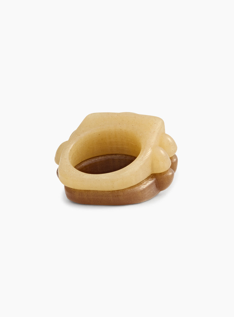 First Half ring made using PLA, beer dregs from Les Brasseurs Normands (a brewery in Rouen, France) and wheat residues repurposed from the grain industry, this piece blends two agricultural by-products into a unique material. By transforming these natural resources, it reimagines waste into contemporary jewelry with character and story.