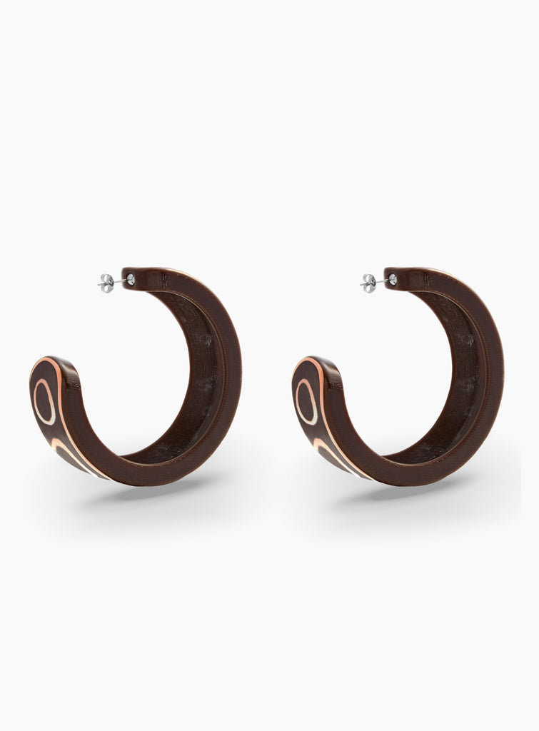 First earring made from PLA and recycled coffee grounds, sourced from the catering waste recycling chain, this piece repurposes waste into a sustainable and unique material, perfect for creating unique jewelry.