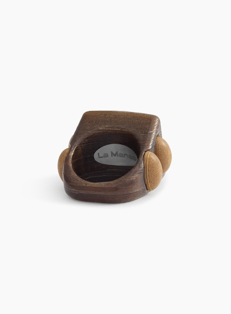 First Manchado ring made from a blend of PLA and coffee from the agriculture industry, repurposing a natural by-product into a unique and eco-friendly material for timeless jewelry.