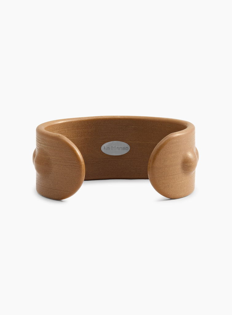 Every BANGLE OLIVE YOU is unique and has its own personality. These pieces are 3D printed in Barcelona using a material made from a mix of PLA (a bioplastic derived from renewable, organic resources) and organic elements from nature like olives, sourced from Spain and France. This material transforms these elements into timeless jewelry.