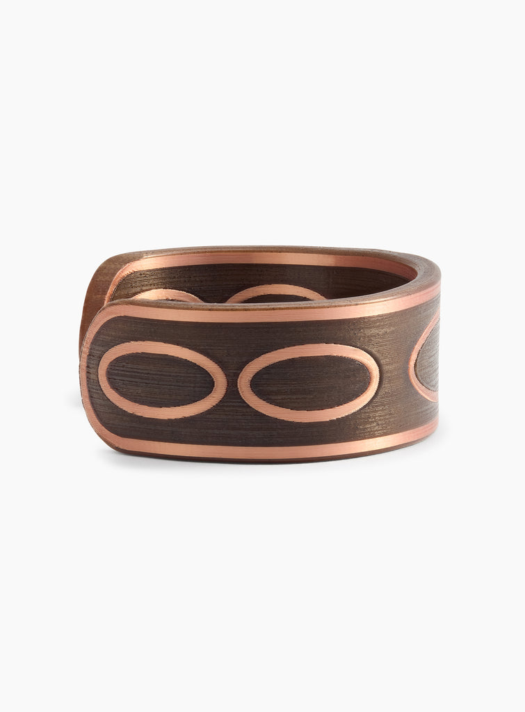Every Espresso Yourself Emanem Bangle ring is unique and has its own personality. These pieces are 3D printed in Barcelona using a material made from a mix of PLA (a bioplastic derived from renewable, organic resources) and organic elements from nature like coffee, sourced from Spain and France. This material transforms these elements into timeless jewelry.