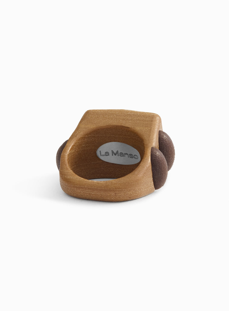 First Iconic Olive You More ring made from a blend of PLA and olive pits from the agriculture industry, reourosing a natural by-product into a unique and eco-friendly material for timeless jewelry.