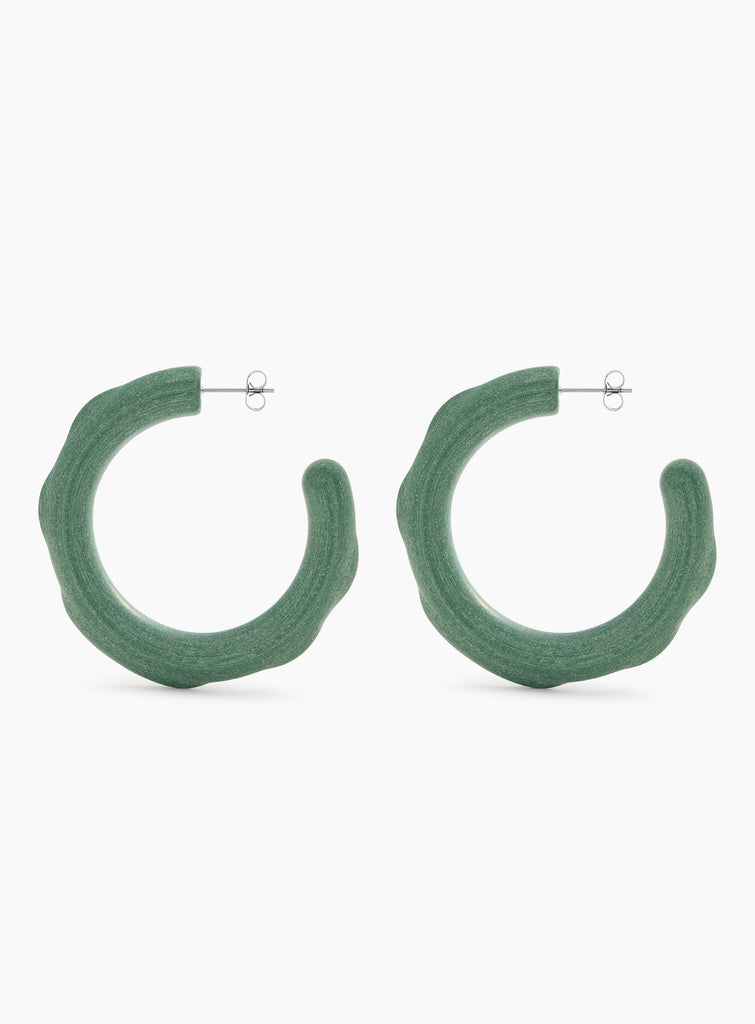 Every PINOCHO EARRIGS is unique and has its own personality. These pieces are 3D printed in Barcelona using material from a mix of PLA ( Bioplastic derived from renewable, organic resouces) and organic elements from nature like willow, sourced from Spain and France. This material transforms these elements into timeless jewelry.