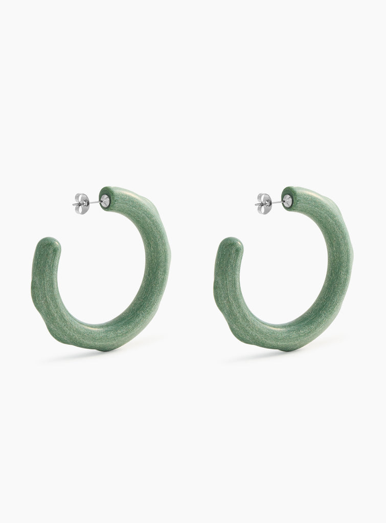 First Earring made from PLA and willow wood, which gives it a unique natural element and texture, along with a green finish