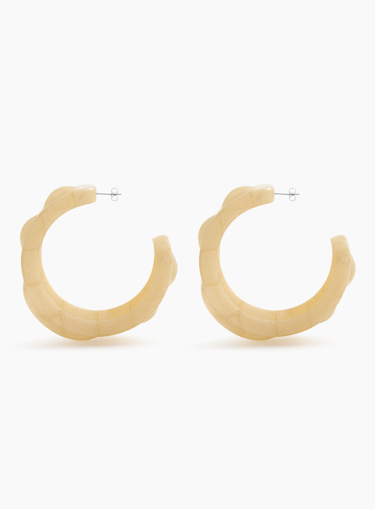 Every SPECIAL KA EARRINGS is unique and has its own personality. These pieces are 3D printed in Barcelona using material from a mix of PLA ( Bioplastic derived from renewable, organic resouces) and organic elements from nature like wheat, sourced from Spain and France. This material transforms these elements into timeless jewelry.