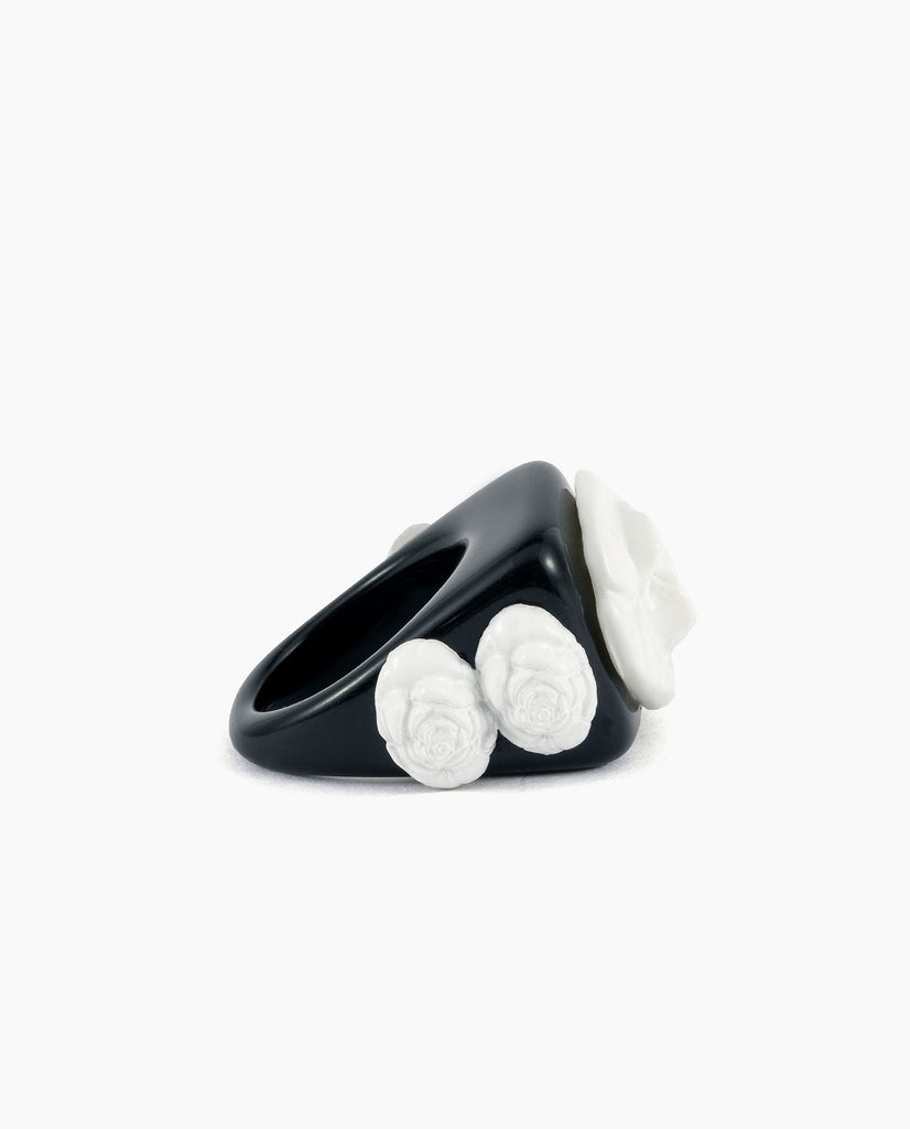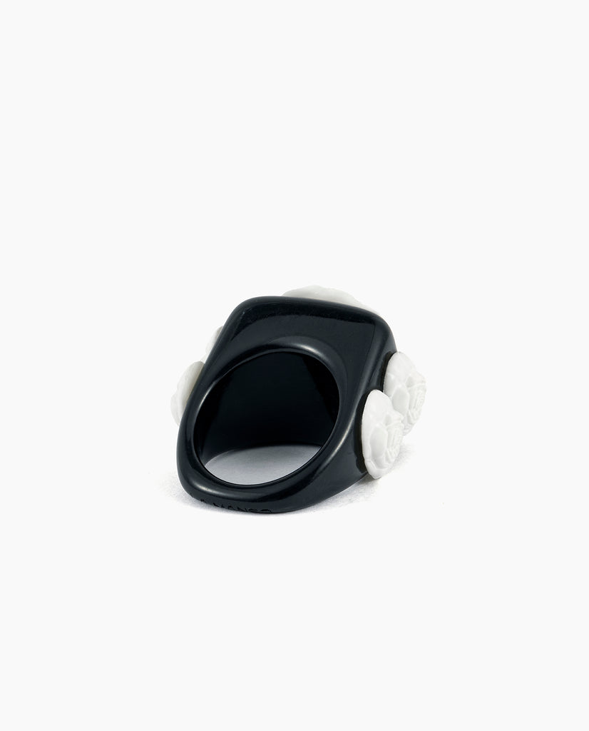 Every Black on White Rosetón ring is unique and has its own personality. Each piece is created from a recovered mold found at an old shop in Barcelona, and is individually handcrafted at La Manso's atelier.