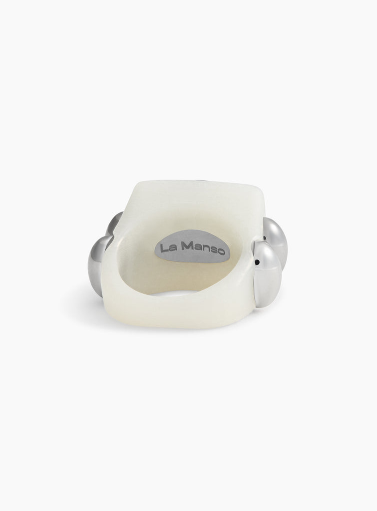 Plastic is fantastic, but not indestructible. Please keep in mind that La Manso rings are jewels, and they need to be cared for as such. Each product is distinct since it is individually handcrafted, which gives it its uniqueness and personality. Any aggressive knock may irrevocably damage the rings. Contact with liquids may affect their durability, even salty water, or your own sweat for prolonged exposure. Take them off when cleaning your hands and avoid any solutions, specially sanitizer gel, as they might wear away their shine or weaken the structure.