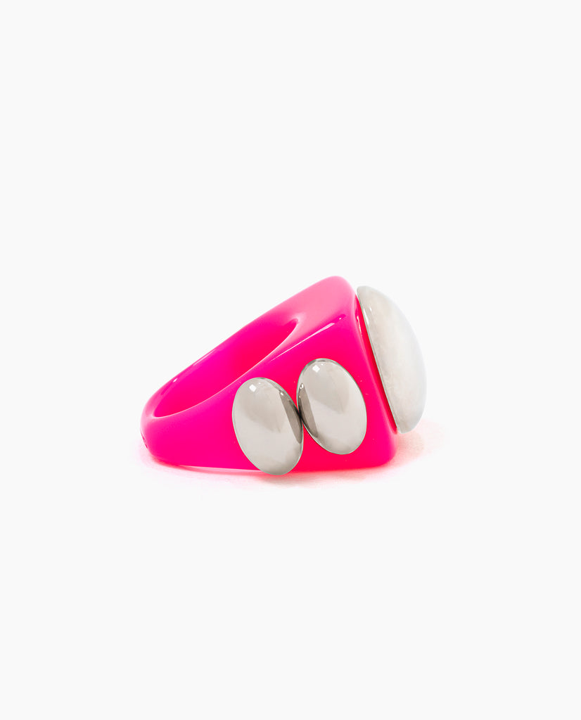 Gypsy silver oval, silver circle on a base of a fluor pink square ring.
